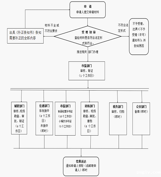 (一)市场主体设立登记 申请人为具有独立民事责任能力的公民、法人或其他组织。 (二)食品(含保健食品)经营许可/小餐饮经营许可(50㎡以下办理小餐饮经营许可,50㎡以上办理食品经营许可。) 食品(含保健食品)经营许可: 1、具有与经营的食品品种、数量相适应的食品原料处理和食品加工、销售、贮存的场所,保持该场所环境整洁,并与有毒、有害场所以及污染源保持规定的距离; 2、具有与经营的食品品种、数量相适应的经营设备或者设施,有相应的消毒、更衣、盥洗、采光、照明、通风、防腐、防尘、防蝇、防鼠、防虫、洗涤以及处理废水、存放垃圾和废弃物的设备或者设施; 3、有专职或者兼职的食品安全管理人员和保证食品安全的规章制度; 4、具有合理的设备布局和工艺流程,防止待加工食品与直接入口食品、原料与成品交叉污染,避免食品接触有毒物、不洁物; 5、法律、法规规定的条件。 小餐饮经营许可: 1.具有与经营规模相适应的固定门店,并与有毒、有害场所和其他污染源保持规定的距离; 2.配备有效的冷藏、洗涤、消毒、油烟排放、防蝇、防尘、防鼠、防虫以及处理废水、存放垃圾和废弃物的设备或者设施; 3.各功能区布局合理,能有效防止食品存放、操作过程中产生交叉污染; 4.具有专用餐饮具清洗消毒设施或者有符合规定的消毒措施; 5.具有保证食品安全的管理制度。 (三)设置大型户外广告及在城市建筑物、设施上悬挂、张贴宣传品审批 不属于许可范畴或不属于本机关职权范围的,不予受理,告知申请人向有关部门申请; 材料不齐全或者不符合法定形式的,现场退回材料,发放一次性补件通知书 (四)建设工程竣工验收消防备案 材料齐全,符合法律规定 (五)公众聚集场所投入使用、营业前消防安全检查 消防监督检查规定 (六)涉税事项办理 1、已实行“多证合一、一照一码”登记模式的纳税人,首次办理涉税事宜时,对税务机关依据市场监督管理等部门共享信息制作的《“多证合一”登记信息确认表》进行确认,对其中不全的信息进行补充,对不准确的信息进行更正。 2、已实行“两证整合”登记模式的纳税人,首次办理涉税事宜时,对税务机关依据市场监督管理等部门共享信息进行确认,对其中不全的信息进行补充,对不准确的信息进行更正。 (七)公章刻制备案 在市场监管部门注册并已取得注册证件 |