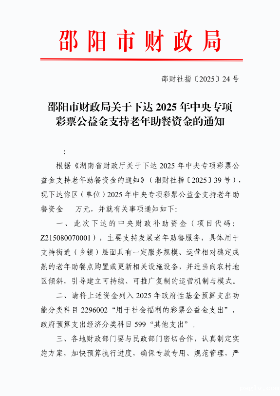 国际米兰百度体育财政局关于下达2025年中央专项彩票公益金支持老年助餐资金的通知