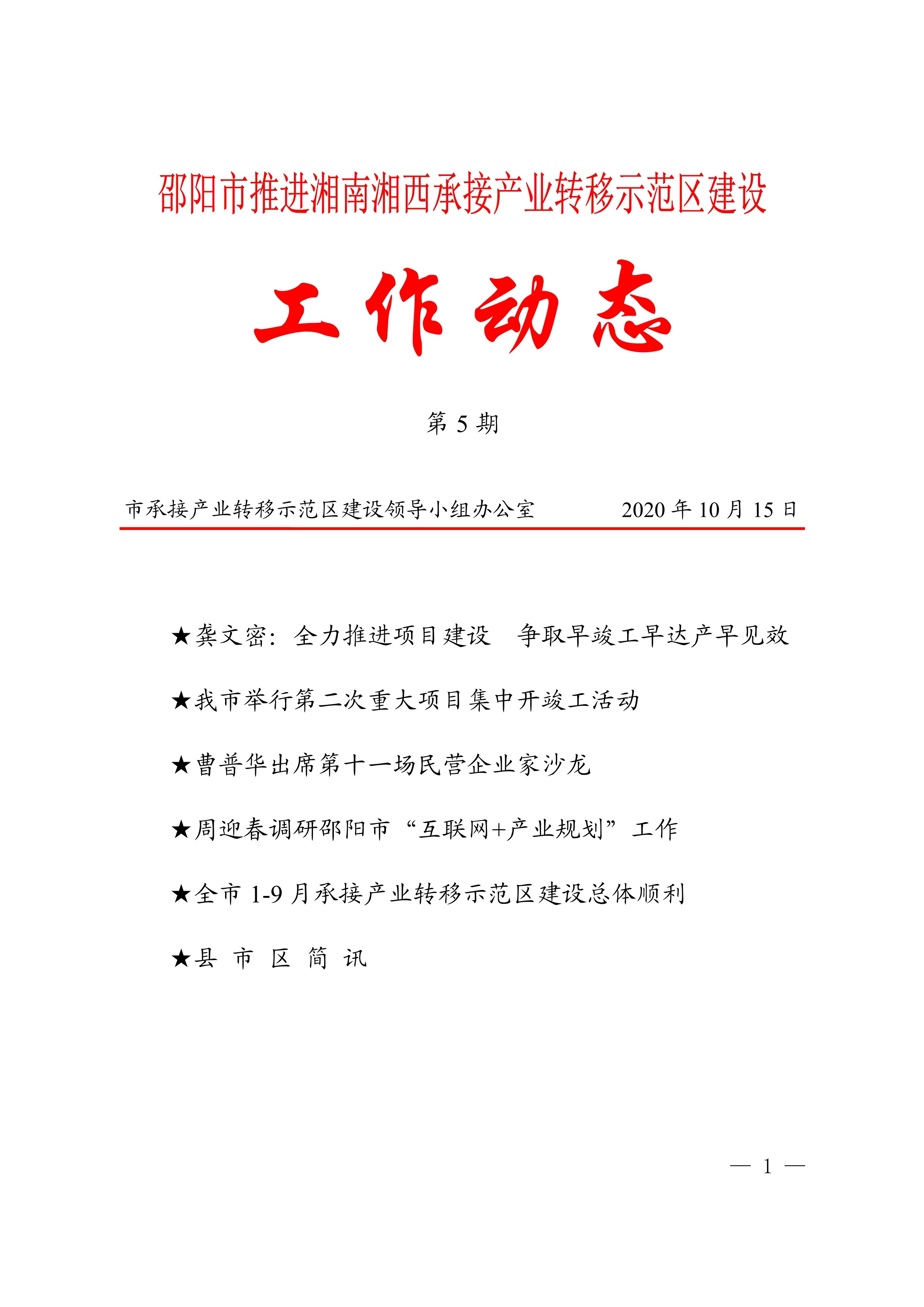 国际米兰百度体育推进湘南湘西承接产业转移示范区建设工作动态第5期