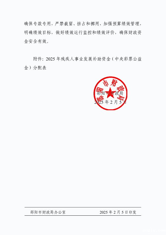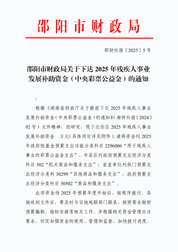 国际米兰百度体育财政局关于下达2025年残疾人事业发展补助资金(中央彩票公益金)的通知